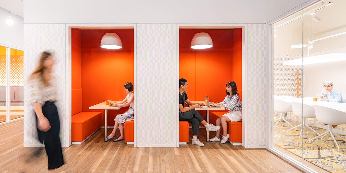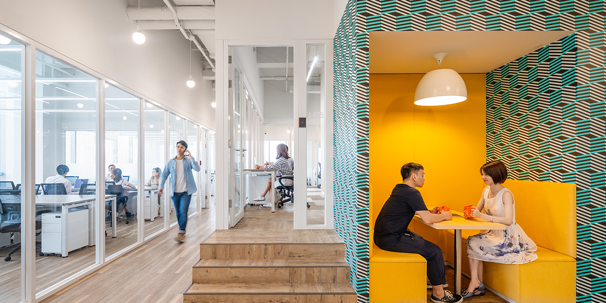 The 3Q was constructed according to the client’s standard density, space use, and efficiency requirements while tackling the challenge of limited natural lighting – a common tradeoff of mall architecture. Since 3Q projects usually involve the process of redefining areas originally earmarked for retail, the design process often involves some divergent thinking to create charming yet productive work environments. Open working spaces were allocated towards the center of the 3Q away from the outer façade and inner atrium. Raised using podiums, these elevated islands were provided with designated entrances, making the rooms feel more exclusive.