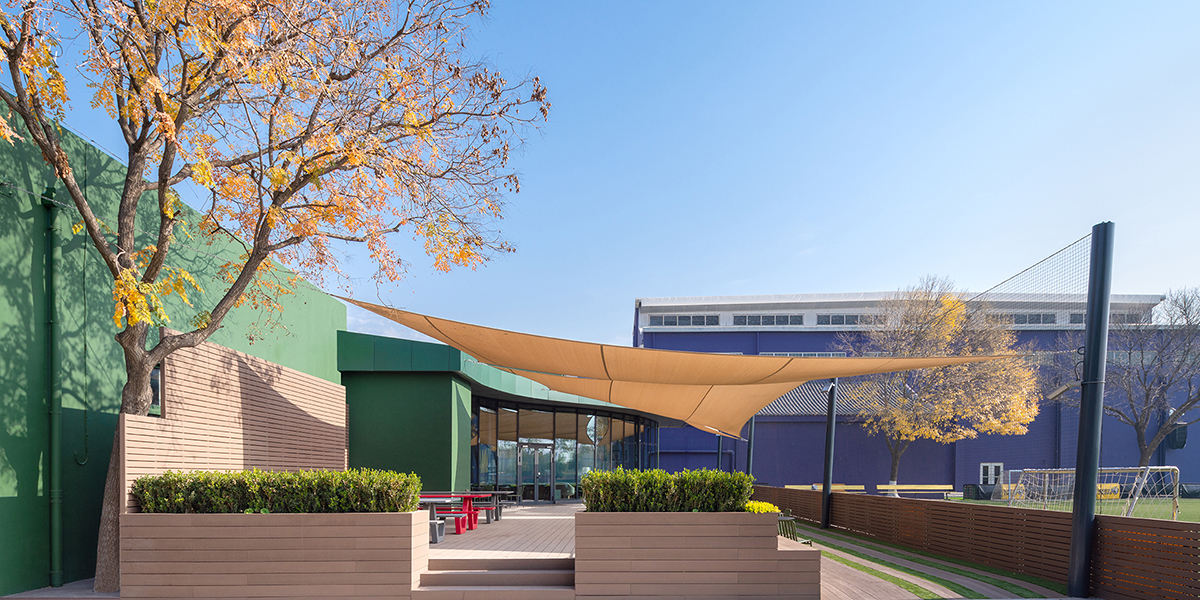 Mit der neu eröffneten Lotus Lounge hat die Western Academy of Beijing (WAB) im Pekinger Stadtteil Shunyi ein echtes Herzstück geschaffen – einen lebendigen Treffpunkt für Eltern und Lehrkräfte im Zentrum des Campus. Seit über 25 Jahren steht die internationale, gemeinnützige Schule für Bildung auf höchstem Niveau in einem offenen und vielfältigen Umfeld. Die Lounge liegt inmitten der Anlage und öffnet sich mit großen Fensterfronten zum Tiger Field, dem Sport- und Fußballfeld der Akademie.
