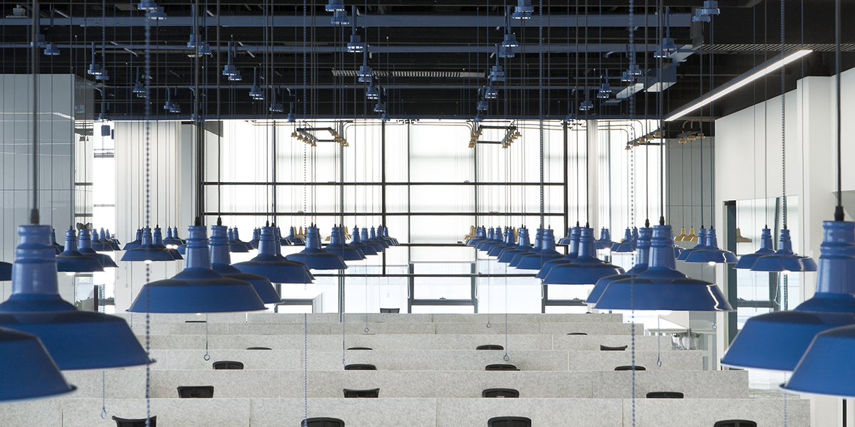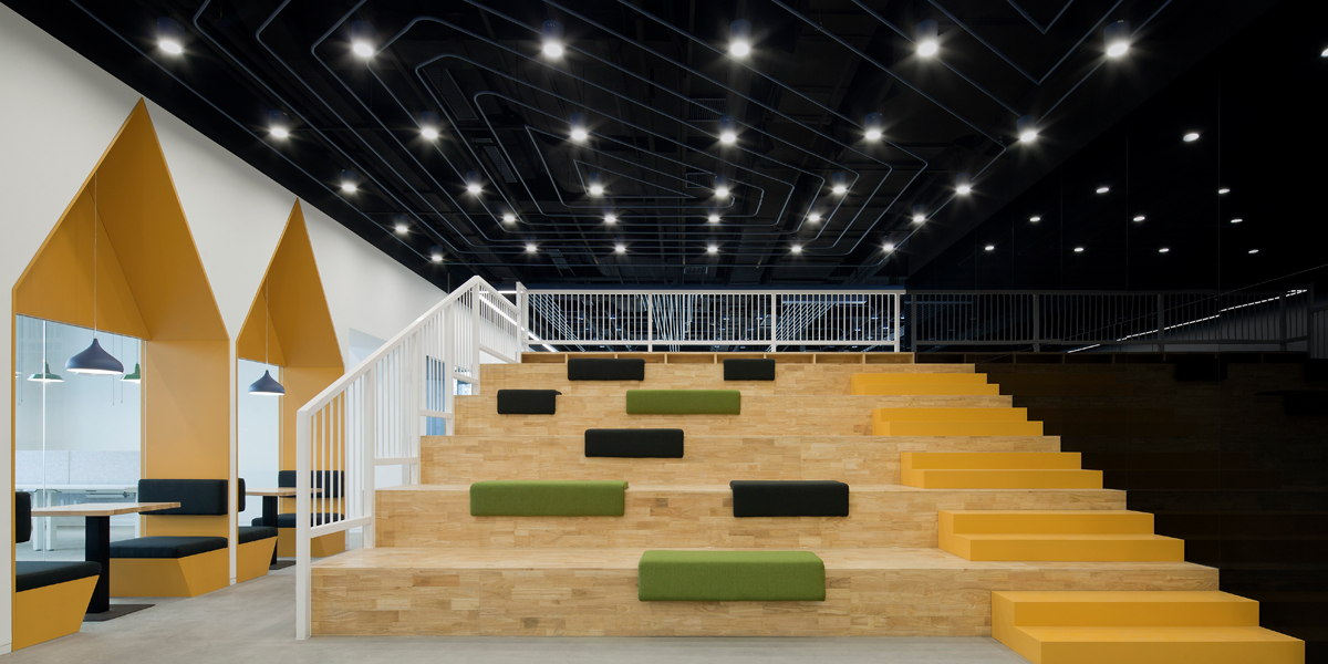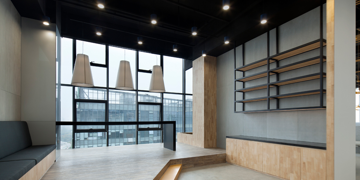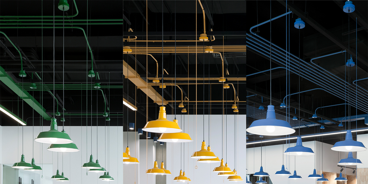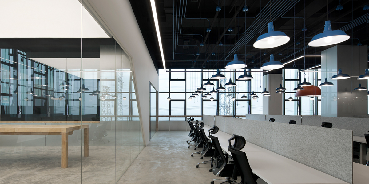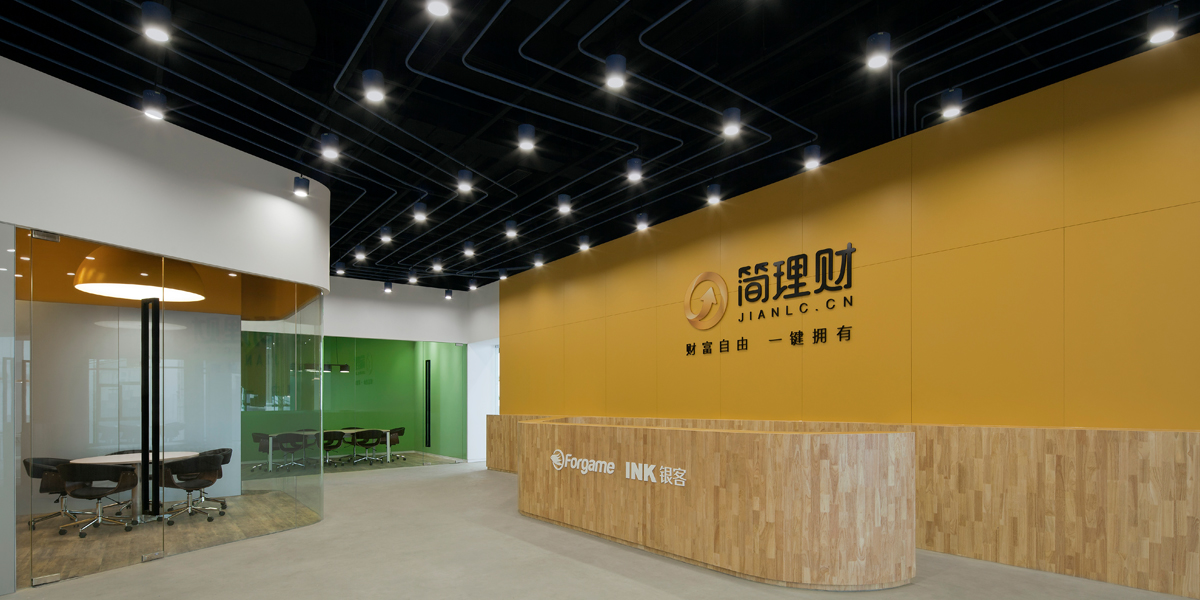 简理财是INK银客集团下属的互联网理财产品,如何帮助客户在错综复杂的世界中找出一款规范可控而稳健的财务产品,这是所有理财公司的终极目标,紧紧围绕这个出发点,在这个全新的办公室项目中,anySCALE将原本可能给忽略掉然后可能杂乱无章的强电和弱电的走线管线作为设计非常重要的一个亮点加以开发,重新细细梳理,按照物理和思维的逻辑关系顺畅叠加然后有节奏地分段引流,根据不同的区域赋予从企业CI规范中提取出来的不同颜色,每一个电动升降的工位对应一个单独的复古拉线开关控制的工业吊灯,每一个工业吊灯对应该区域特有的颜色,于是,INK银客里面有性感的蓝灯区,黄灯区,绿灯区和......最性感的红灯区。