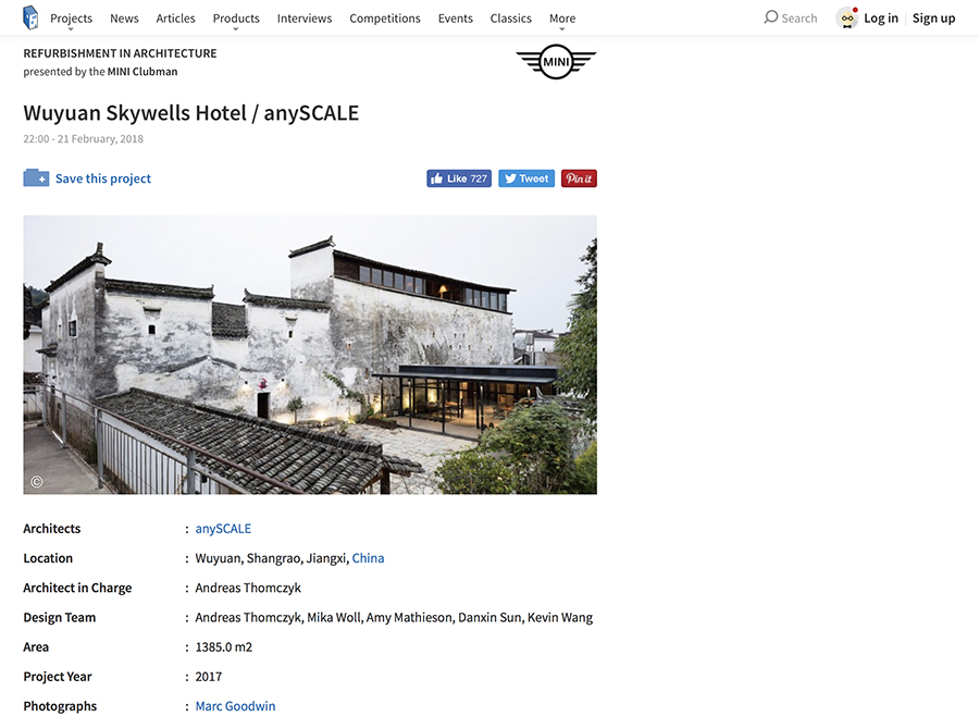 Archdaily’s Chinese edition published an article on the 23rd of February. The article features several pictures of the property as taken by acclaimed photographer Marc Goodwin as well as details about the background and process of the restoration.