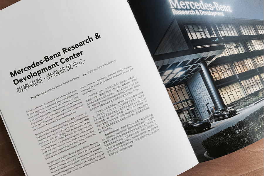 Designwire’s new yearbook featured one of anySCALE’s landmark projects: Mercedes-Benz R&D Centre. This is the only design centre that currently exists in Asia, as well as one of only five that Daimler runs worldwide. The 11,000 square meter centre includes a design studio, workshop, an outdoor courtyard as well as innovative offices spaces. Designwire is a media platform known for being a world-leader in showcasing the latest high quality interior design projects.