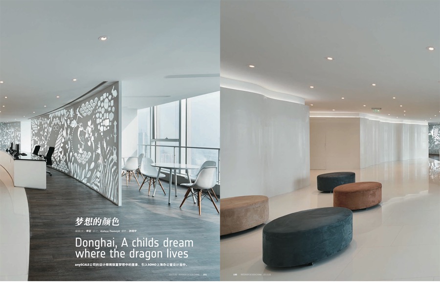 anySCALE’s design in SOHO Donghai, SOHO China’s headquarter office in Shanghai, was published in Interior Design China (ID China) in their May edition, 2013. “Donghai, where dragons live in a child’s dream” is the concept brought out by our design team, lead by Andreas Thomczyk, for the new space. ID China is the Chinese version of US magazine Interior Design, founded in 1932 and widely considered one of the world's top interior design magazines.