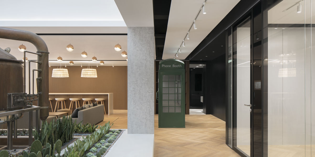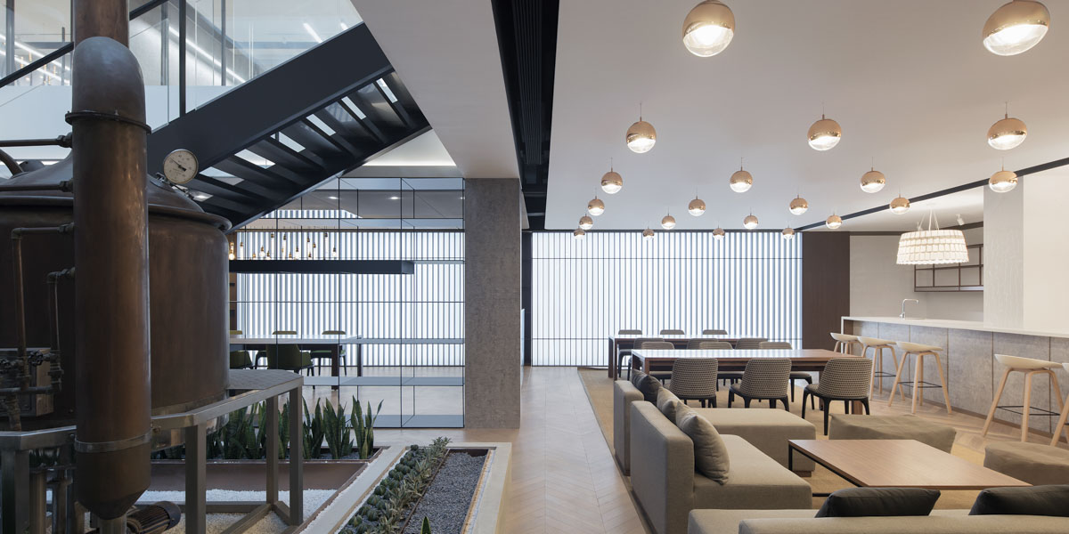 CRLand, another long-time client of anySCALE, once again hired the architecture design firm to help develop the clubhouse of its sister company CRSnow and transform it into a co-working space for its employees. The client wanted to keep the hotel theme and beer culture of the original Snow Beer office, so the two large central copper beer stills were retained while modifying the remainder of the two floors.The greatest challenge in modifying the layout was ensuring enough natural light would be let in, natural light having the greatest impact on workers’ moods and productivity.