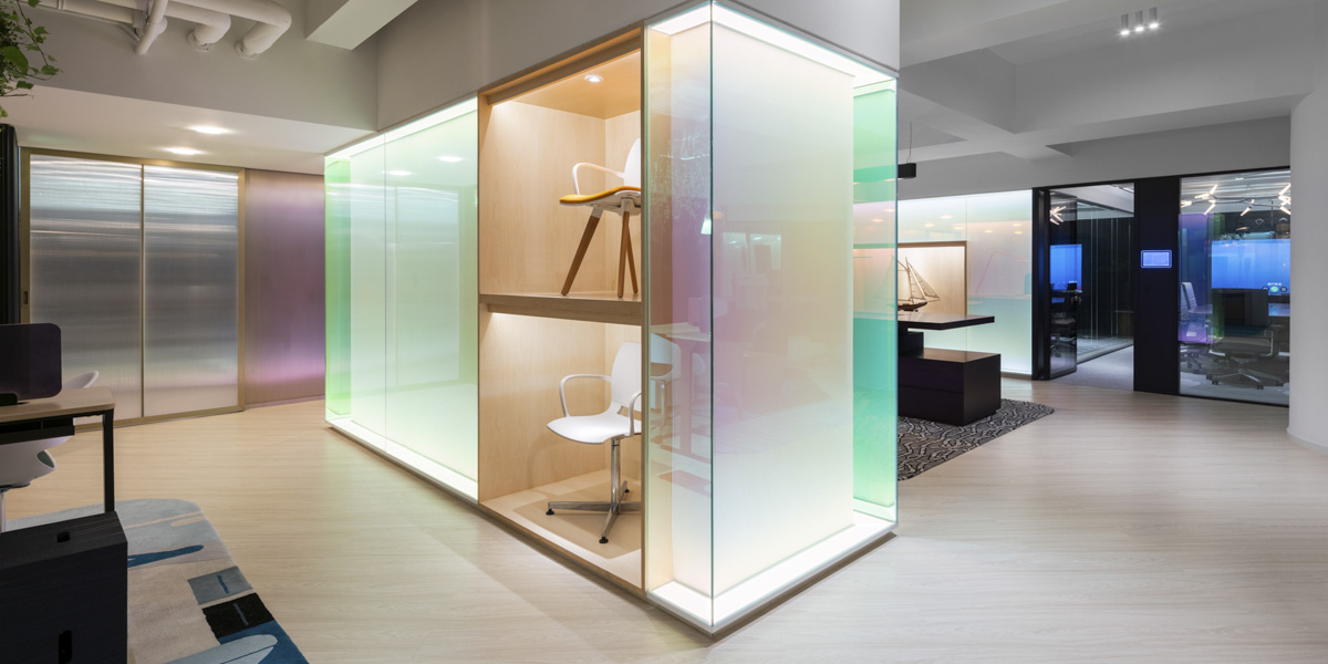 Having already collaborated with MATSU for showrooms in Beijing and Shanghai, the concept for Shenzhen was to provide a Container of Dreams for visitors to better experience the brand's furniture designs with design space elements inspired by the region. The main challenge was to create a high contrasting fresh-light environment, showing how high-end offices with executive furniture designs could help customers envision their future workplace.