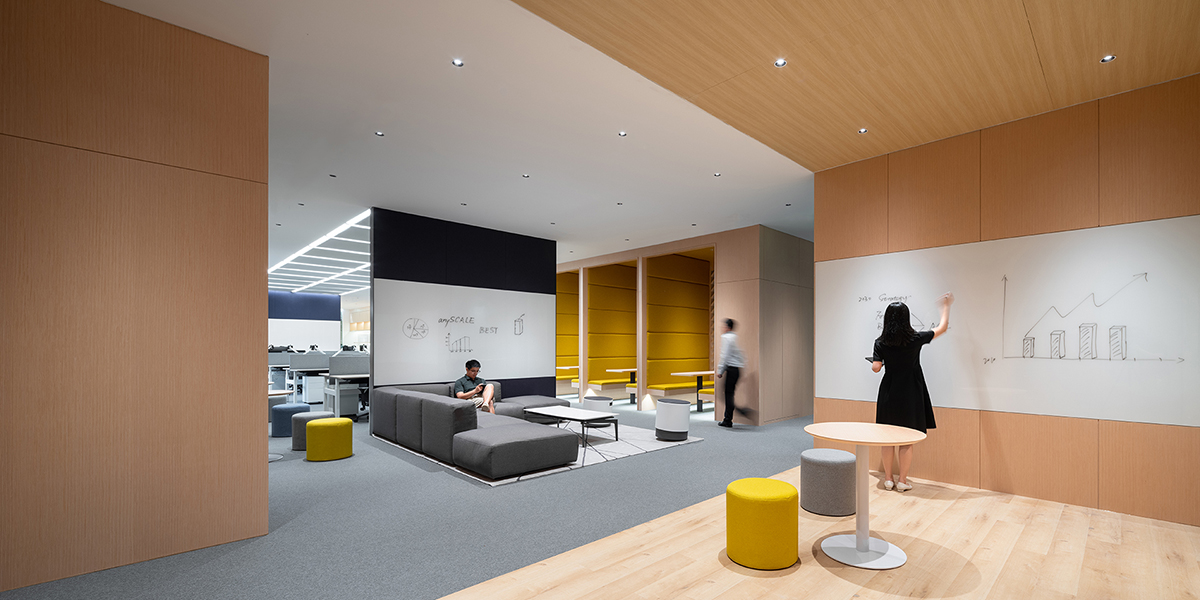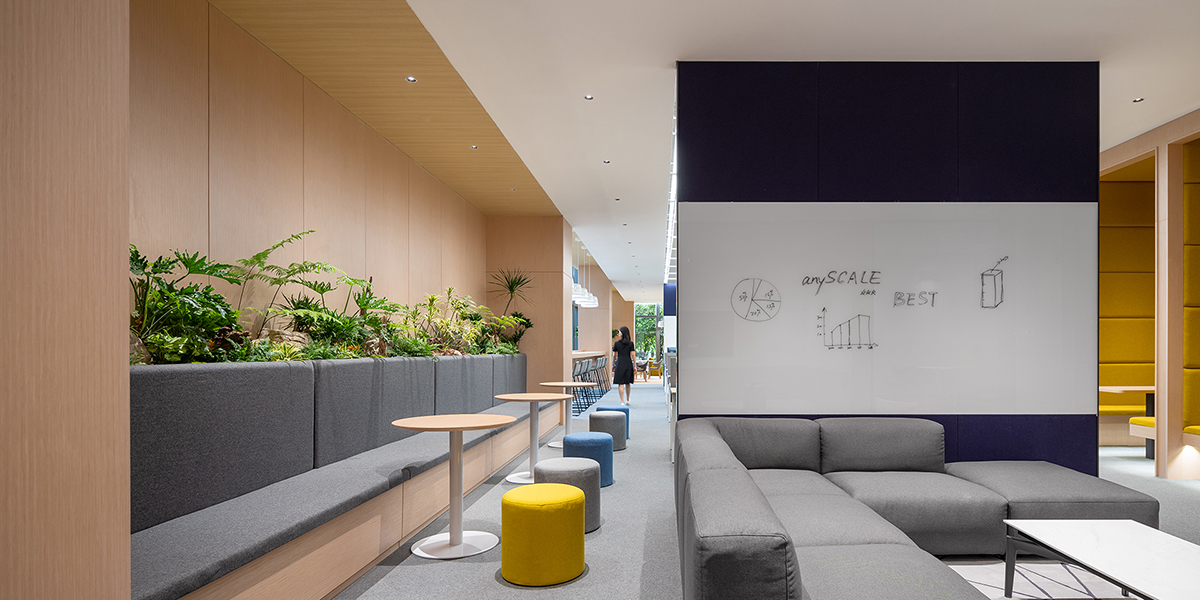 “En el sector financiero, muchos empleados pasan la mayor parte del día frente al ordenador”, explica Tom Chan, cofundador y socio director de anySCALE. “Nuestro objetivo era diseñar una oficina que fomentara una cultura laboral más saludable y motivadora.”