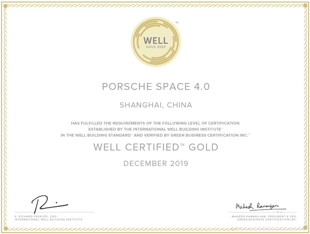 Porsche China’s new office is the first-ever Porsche property worldwide to achieve the WELL Building StandardTM gold certification standard.