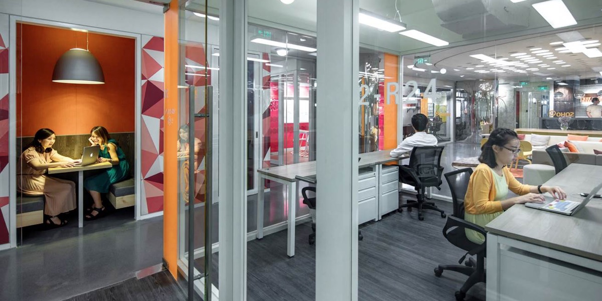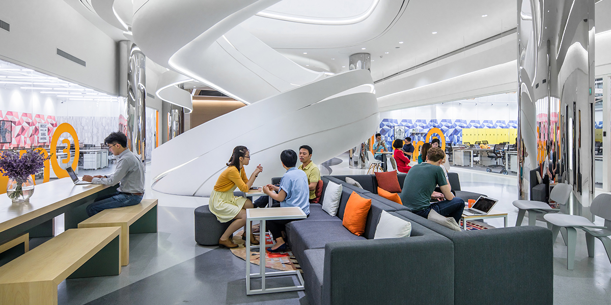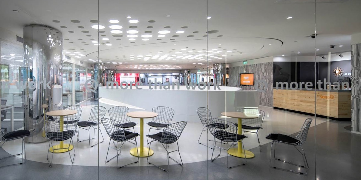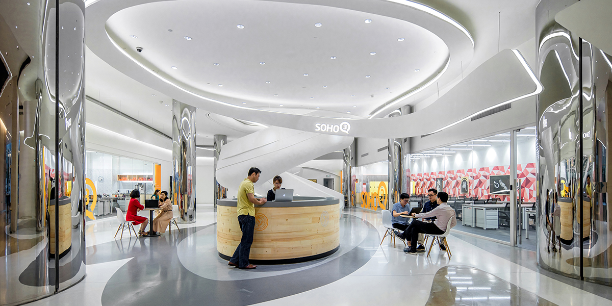Donghai 3Q is the second 3Q in Shanghai and counts as one of the smallest 3Q projects designed by anySCALE. Located in the former showroom of Zaha Hadid, the focal point is a white spiral staircase (also designed by Zaha) which connects the two floors. One challenge of designing a 3Q in an existing space belonging formerly to a renowned architect is how to blend the existing with the new. The white glossy staircase makes a strong design statement and anySCALE wanted to both respect this architectural feature whilst not allowing it to overbear the 3Q design. The solution was to make it a gathering place by location 3Q’s main lounge, casual seating and reception desks around the stairs.“Architecture has its own life. Even if it’s gone… there’s a memory there. When you put a new thing into it [the space], how you appreciate it and understand it’s history and memory, and factor this into your design, is a challenge for all of us.” - Jerry Yin, Head Architect of SOHO China. We like the outcome so much that we decided to open our own anySCALE Shanghai office in this space.
