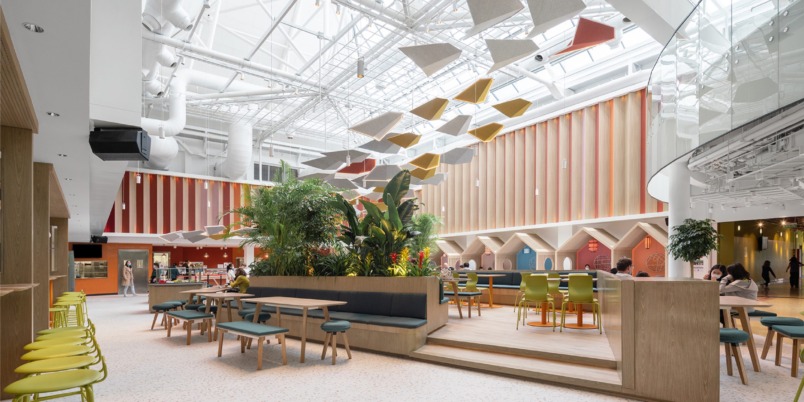 The Western Academy of Beijing Atrium or WAB Atrium is a community learning space that is dynamic and flexible in design. As one of the most active spaces for WAB students, our renovation incorporates multi-functionality, modern aesthetics, optimal lighting, improved acoustics, and more efficient traffic flow.