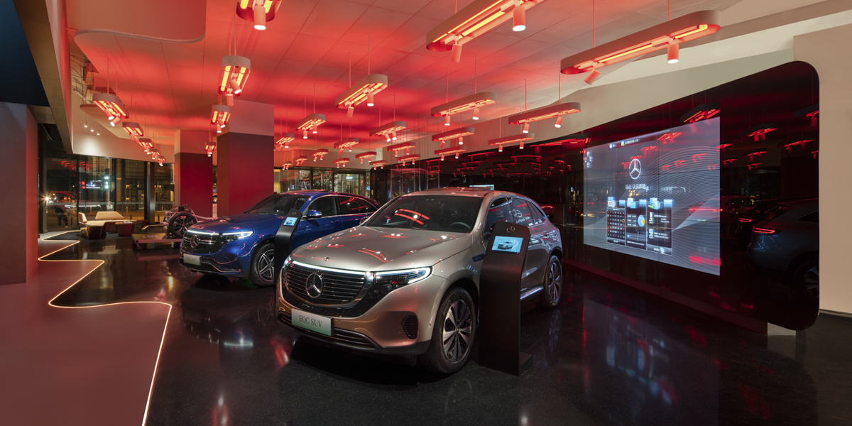 凭借创新十足的设计概念,anySCALE一举获得梅赛德斯-奔驰首批三家纯电动SUV系列展厅的室内设计任务 - the EQC。