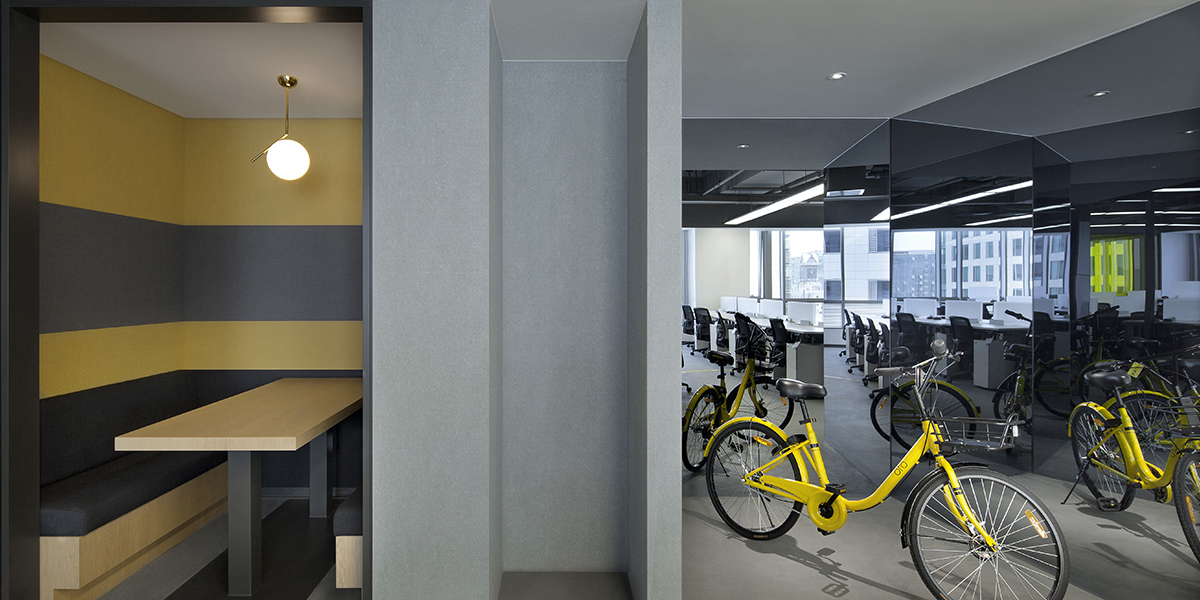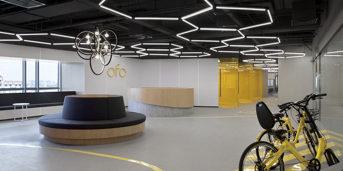 The pioneer of China’s bike-sharing industry, ofo’s new office space in Zhongguancun Beijing was designed by anySCALE. Deriving heavily from street and bike culture, the design elements stood out against the stark background. The minimalism of a basic cement floor was interrupted by yellow patterns and lines much like traffic markings on roads.