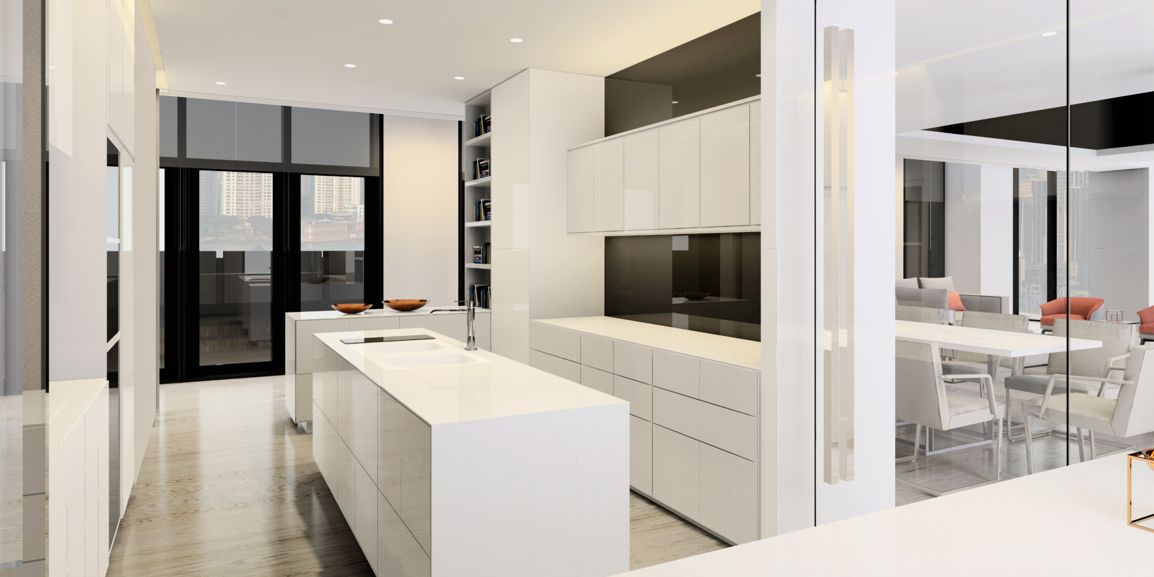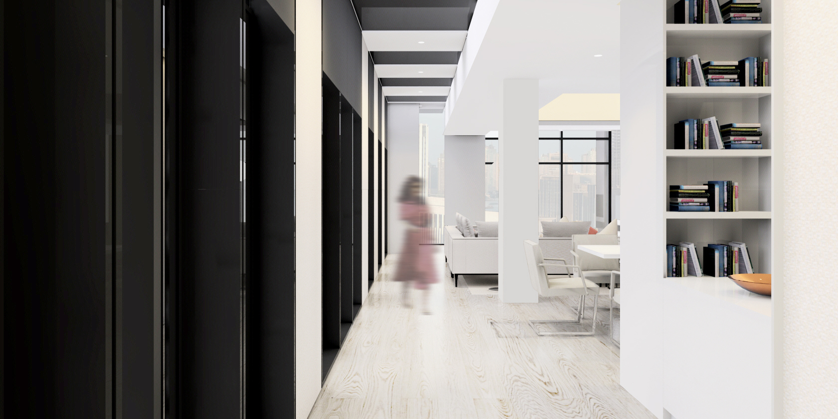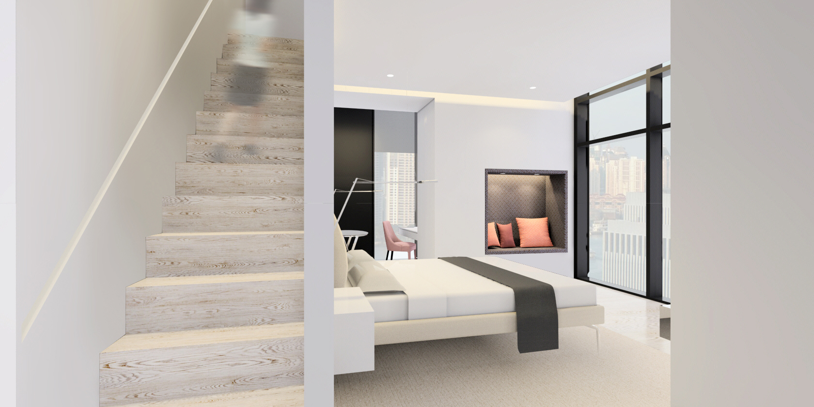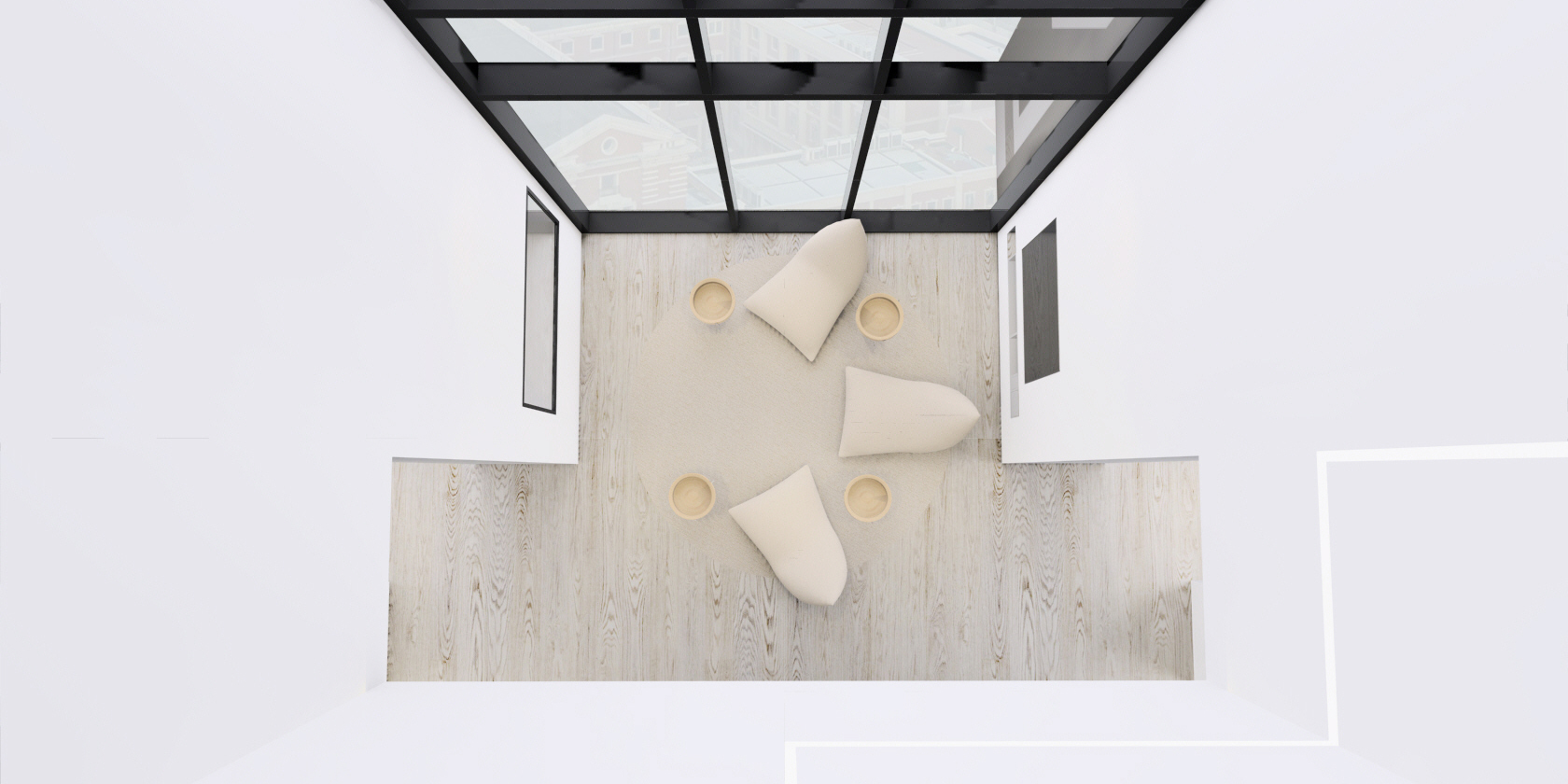 For any architect, it is a dream to be invited to design within such an extraordinary setting. This apartment, the only one of its kind, crowns the top floor of SOHO The Bund, offering an uninterrupted 360° panorama across Shanghai’s most treasured central districts. Extending along a generous open terrace, the layout follows a sequence of increasing privacy: beginning with the master bedroom at one end, overlooking the historic inner city, and culminating in a grand living room at the opposite end, facing the dramatic Pudong skyline and the curve of the Huangpu River.