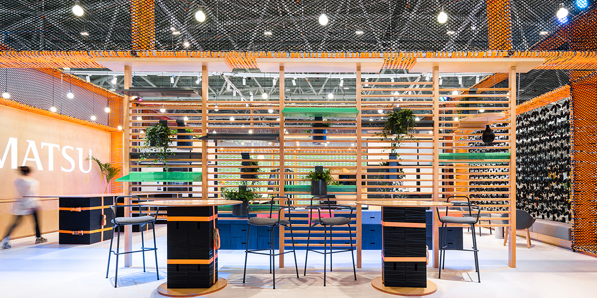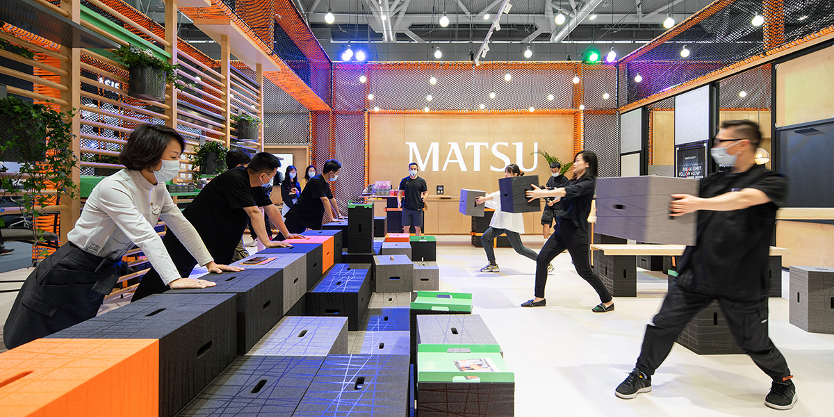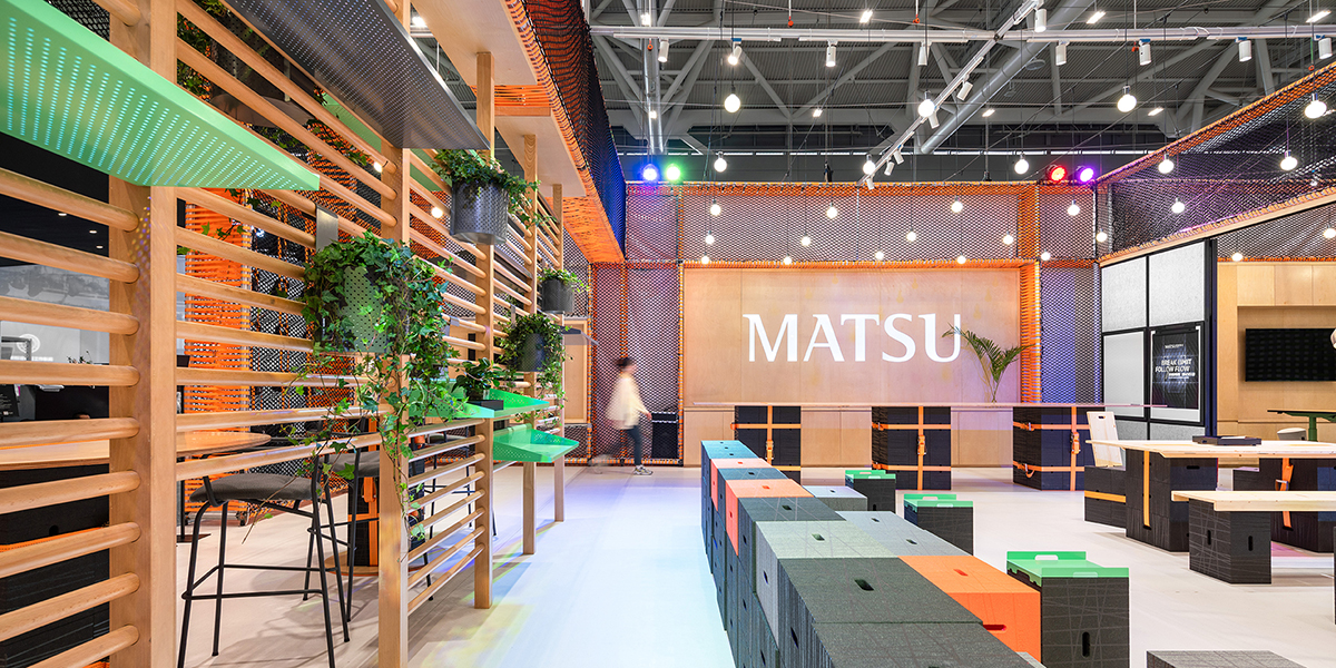 The key to the project was our understanding of marketing to be visually and experientially iconic. MATSU is the maker of modern work-life balance furniture, and ZWYN promotes its lifestyle. The whole design is temporary with intense colors, nets, and modular interfaces – a coming together of multiple industries to score one common goal.
