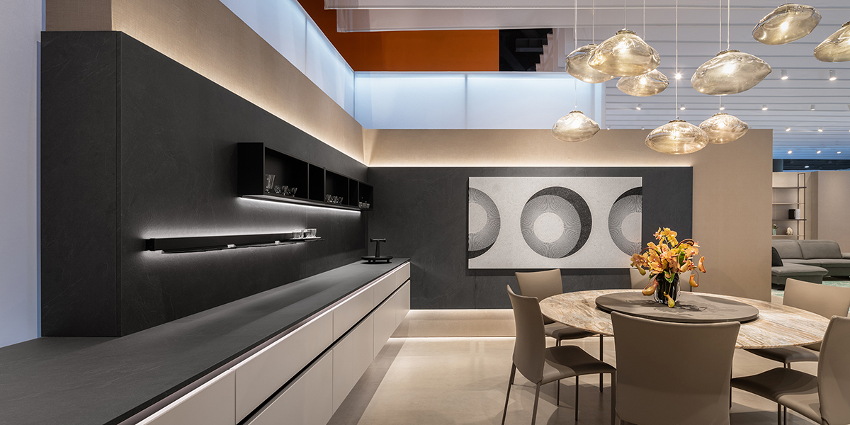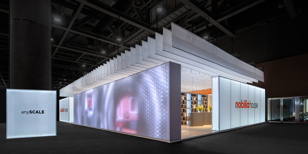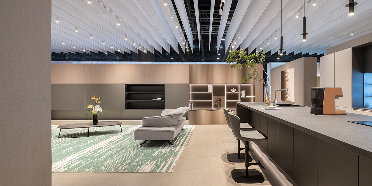 Nobilia, Germany’s leading kitchen manufacturer, commissioned anySCALE to rethink the classic trade fair booth for CIFF Guangzhou 2022. Rather than simply displaying premium kitchen furniture, the stand is conceived as an immersive, home-like environment inspired by international-style open-plan living.