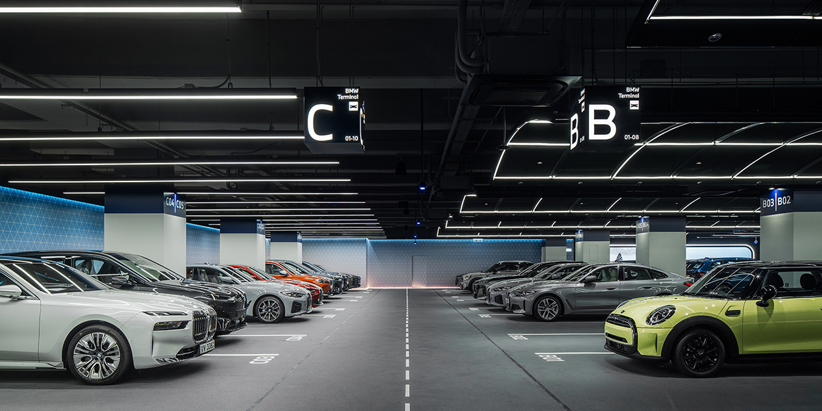 The wayfinding design of the Tsuen Wan Vehicle Delivery Center is not merely an information system, but a complete “boarding experience” narrative. Inspired by modern airports, the project translates aviation circulation, signage logic, and spatial order into a premium delivery language aligned with BMW’s brand identity.