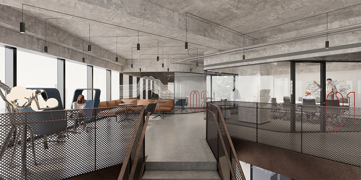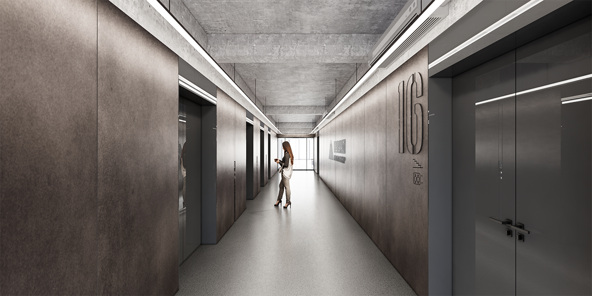 The design integrates with the exposed concrete textures used throughout the space, avoiding excessive decoration and allowing signage to blend naturally into the architectural context. Visually, the system combines minimalist structures with large-scale numbering. Oversized floor numbers enhance spatial order and recognition efficiency while introducing a modern visual rhythm. Selective use of vivid accent colors creates focal points within the predominantly grey environment, maintaining the company’s composed tone while adding energy and a contemporary atmosphere. Material strategies prioritized cost efficiency and construction feasibility, using film applications and silkscreen printing adaptable to various substrates to ensure smooth implementation.