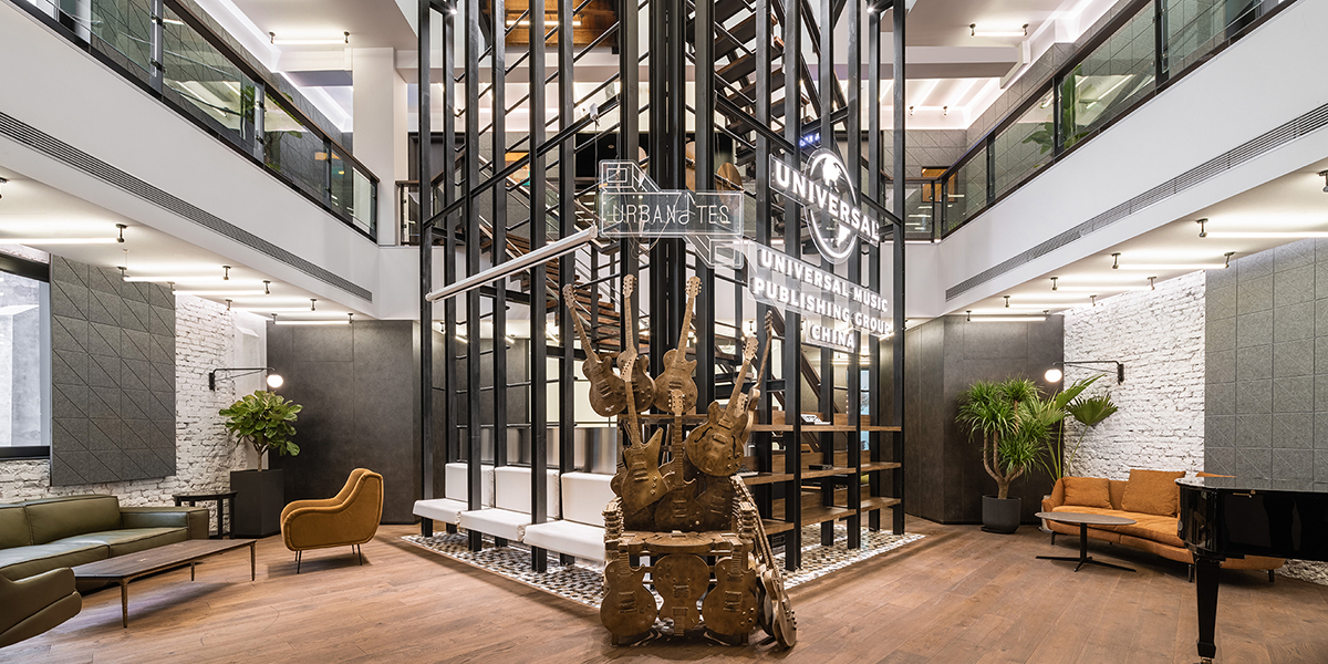 In this transformation of an old warehouse, anySCALE reimagined the Universal Music Publishing Group office as a state-of-the-art creative hub. Completed in 2021, the 600 m², two-story space includes songwriter studios, event and lounge areas, and an urban rooftop terrace—an open, inspiring setting for musical collaboration in Shanghai.
