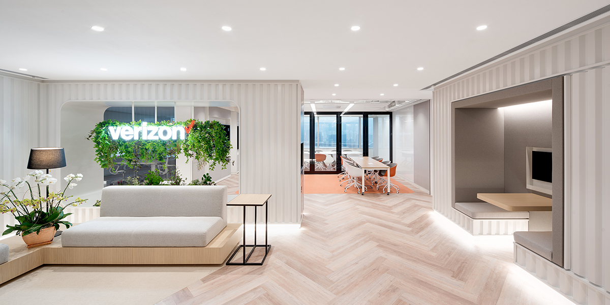 Verizon香港总部办公室,位于德宏大厦(Devon House)的两层楼,拥有迷人的海港和山脉景色。anySCALE 用独特的手法,凸显及区分了两个楼层的企业文化,26楼是以品牌形象打造的公共会议中心。