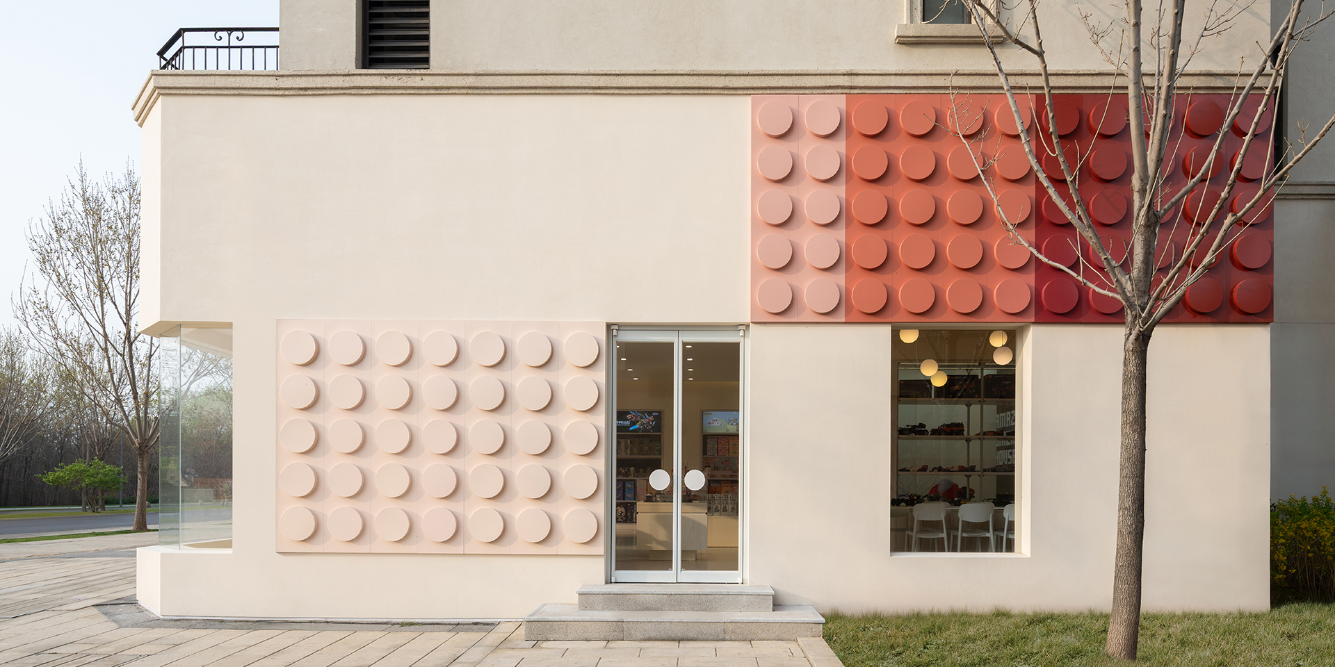 空间设计上,以极简、纯粹的语言呈现品牌理念。外立面色调融合周边环境,入口以积木造型门头凸显品牌识别,橱窗展示“阿那亚礼堂”积木模型,吸引观者驻足探索。内部材质以沙滩为灵感,采用类沙色艺术漆与“洋海蓝”主色调,结合镜面装置营造空间层次。展陈逻辑简洁有序,多元手法凸显产品魅力,天花局部使用软膜灯光系统,精准聚焦展品高光时刻。儿童拼搭区以“泡泡”为灵感,营造趣味盎然的互动场景,不仅为儿童提供自由创作的空间,也唤起成人对童年的温柔回忆。
