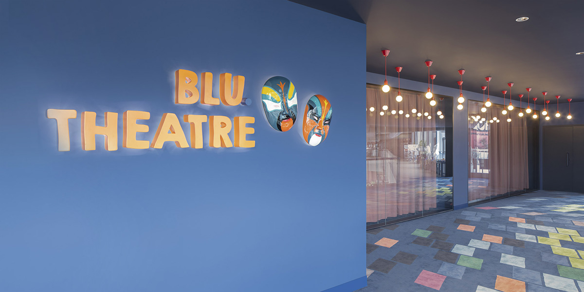 The Western Academy of Beijing has been revitalizing its various facilities, the Blue Theatre being one such part of this rejuvenation process. The name of the space – the Blue Theatre – was set, but the pre-existing interior did not refer to it. Taken from a children’s book called “The Rainbow Fish,” the epithet alludes to a story where a beautiful fish gives his scales away to other fish as a sign of friendship.